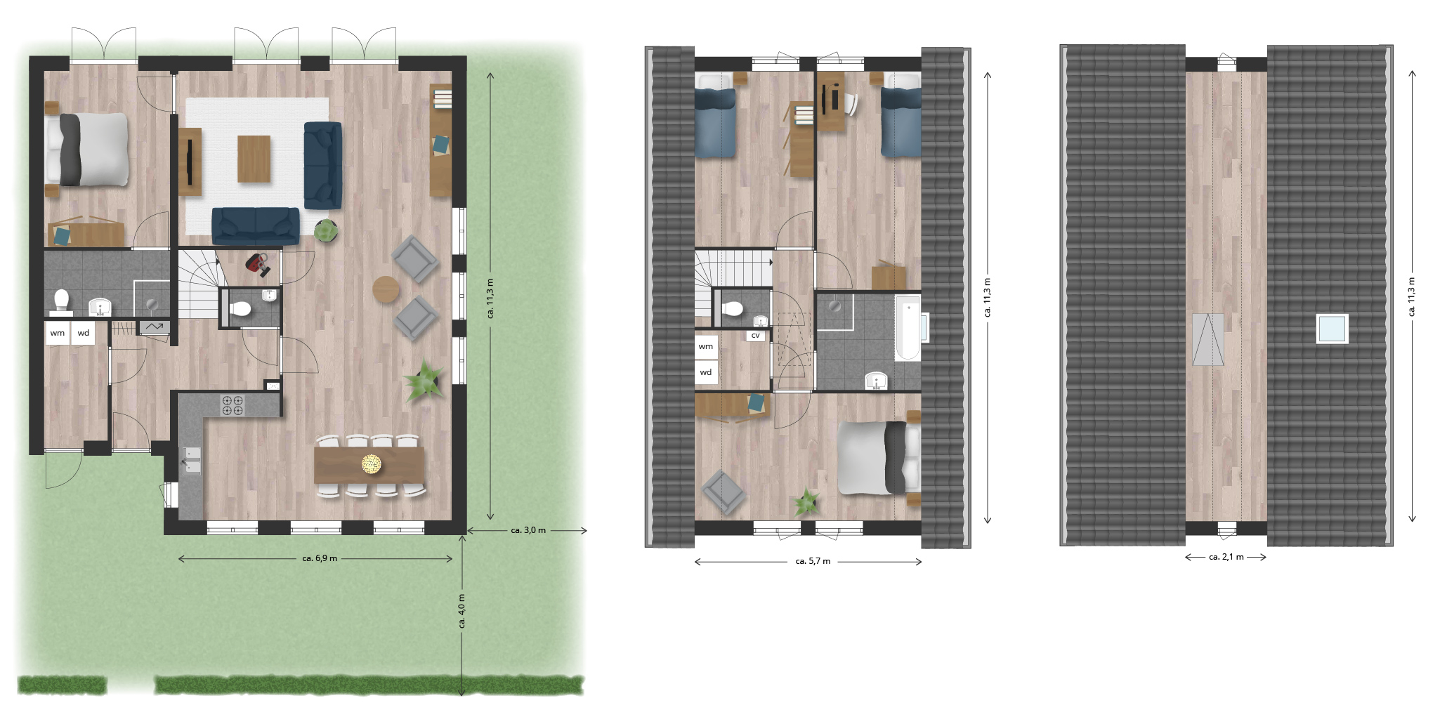 Een woningtype met voorzieningen voor nu of voor de toekomst. Dat betekent dus dat u een slaapkamer en eigen badkamer op de begane grond heeft. Naast de voordeur bevindt zich een bergruimte voor fietsen, tuinmeubilair of gereedschap. De keukenopstelling kan naar wens tuingericht of straatgericht worden geplaatst Op de eerste verdieping bevinden zich 3 grote slaapkamers en de tweede badkamer. Via de overloop is een aparte ruimte bereikbaar voor wasmachine en droger (die ook in de berging kunnen staan). Tegenover de ruime badkamer wordt op de verdieping een separaat toilet gerealiseerd. De zolderverdieping is via een vlizotrap te bereiken Via een optionele vaste trap kunnen op de zolder twee extra kamers worden gerealiseerd. De woning is optioneel te voorzien van een geïsoleerde of ongeïsoleerde garage/berging. De afmeting en locatie kunnen naar wens worden bepaald. Liever een andere woningindeling of kleurstelling? Neem contact met ons op voor de mogelijkheden.Kenmerken Senior