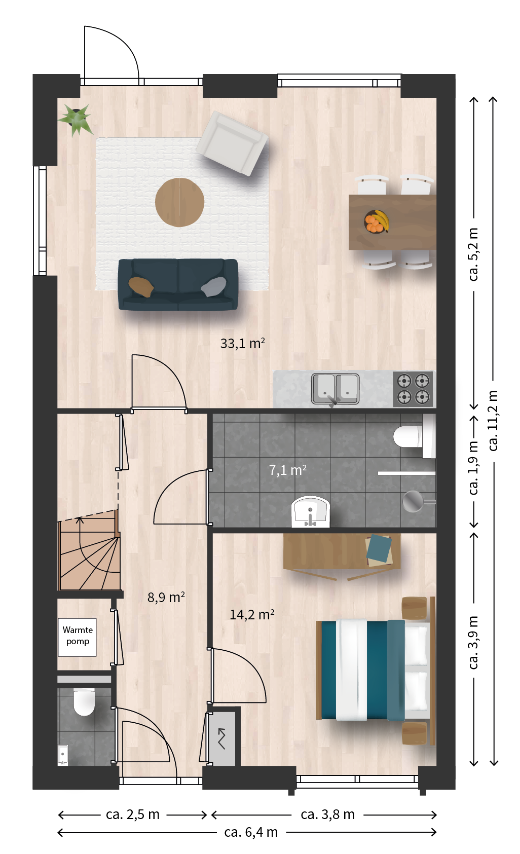 badkamer met douche en toilet en seperaat toilet op begane grond